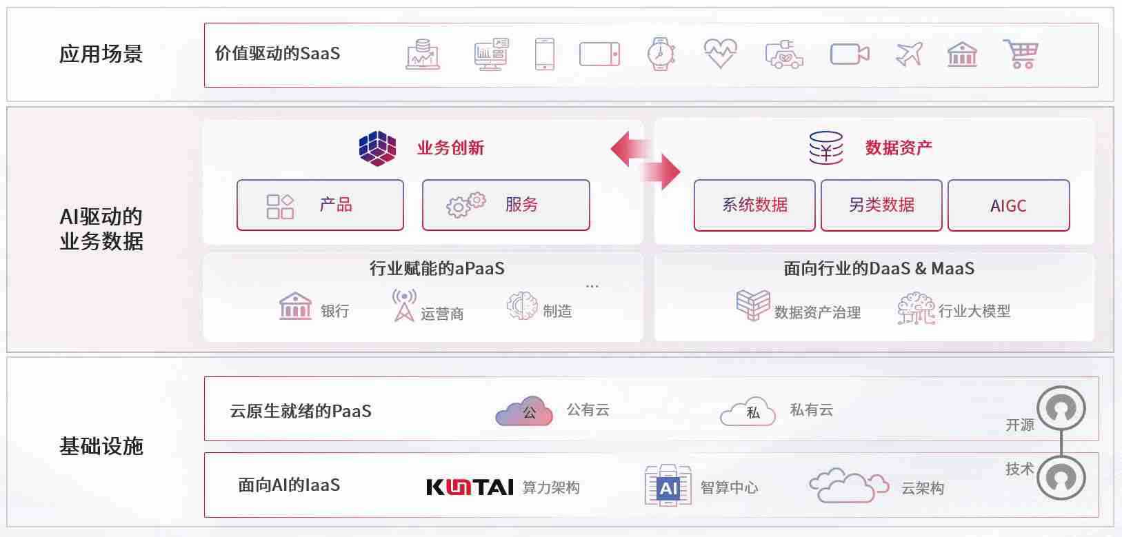 数字时代,,,围绕企业数字化转型的关键要素,,,抢庄牛牛数码开创性的提出数云融合战略和技术体系框架,,,,着力在云原生、、、、数字原生、、、AI原生和信创产业上架构产品和服务能力,,为处在不同数字化转型阶段的快消零售、、汽车、、、金融、、、医疗、、、、政企、、、教育、、、运营商等行业客户提供泛在的敏捷IT能力和融合的数据驱动能力,,,,构建跨界融合创新的数字业务场景和新业务模式,,,助力企业级客户建立面向未来的核心能力和竞争优势,,,全面推动社会的数字化、、、、智能化转型升级。。。